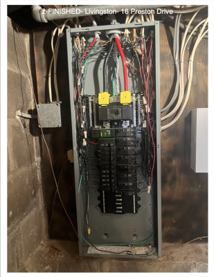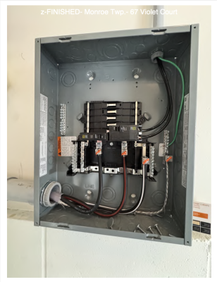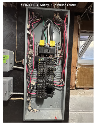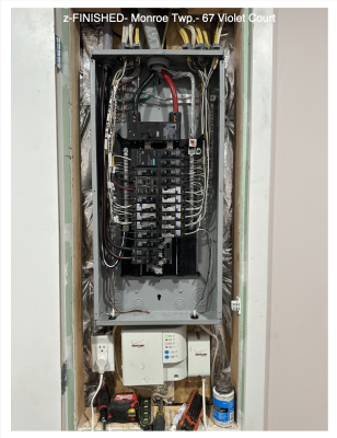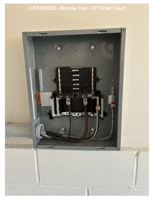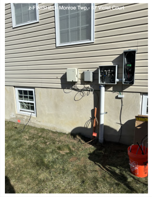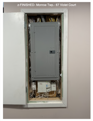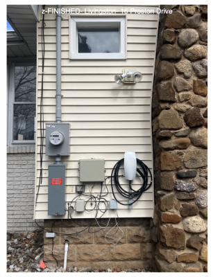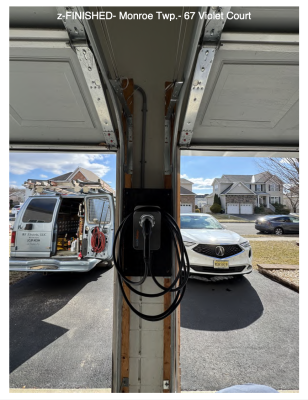 When the electrical service panel is in the basement, the circuit runs from the panel through the basement into the garage. Then, usually extended with a conduit through the garage to the charger location. With an unfinished basement, these installations are relatively straightforward. When the basement is finished, the installation can be more challenging, especially when the ceiling is finished with sheet rock. In those cases, the wire is fished, run through unfinished areas, and ductwork chases. The installation of access panels is also often required to access the garage.