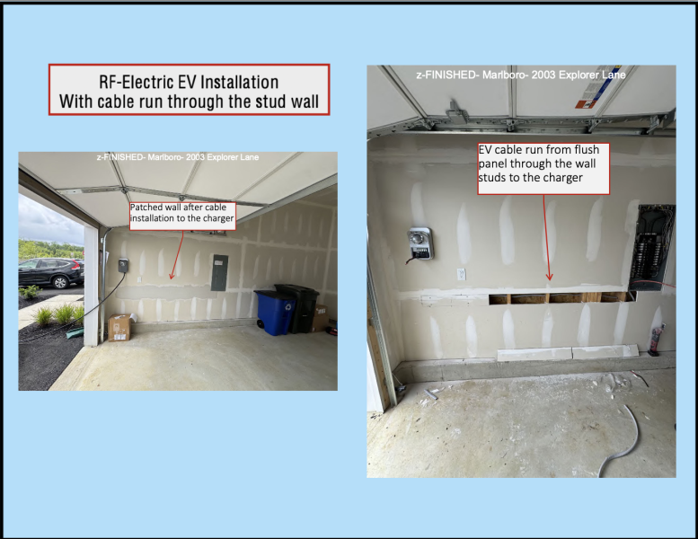 The need for this type of installation is often found in a split-level type of house. This usually requires installing the cable through a conduit outside the house into a front porch soffit/overhang space, then across to the garage side of the house to the charger.
